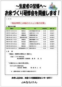 お米づくり研修会の募集人数変更のお知らせ(片桐支店開催)