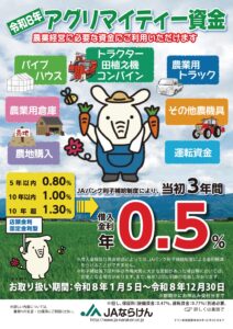 アグリマイティー資金利率表(2026年1月5日~2026年12月30日)